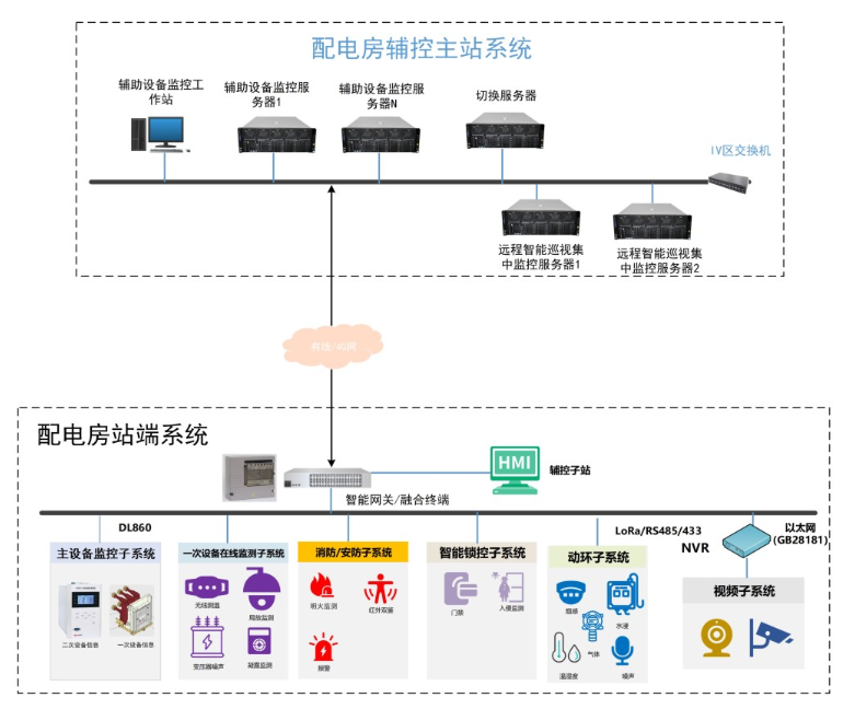 配电房智能辅控系统主要应用于10KV开关站、配电房等场合,由主站和站端系统组成,主站系统具备实时监测、视频监控、设备管理、趋势预测、告警推送、远程运维、自动巡视、智能联动、智能告警等功能,通过地图、沙盘、图表、视频展现整体区域的配电房信息。系统的统计、告警信息清晰简洁,告警预警实时上送,与站房智能网关联合完成站房联动策略及其它高级功能。站端系统由站房智能网关及设备状态监测、安防监控、环境监控、锁控、视频等子系统共同构成,完成配电房环境、安防、视频、设备状态等信息的统一接入、统一存储和管理,具备配电房运行监视、智能巡视、综合分析与智能告警等功能,实现区域配电房集中运行管理。